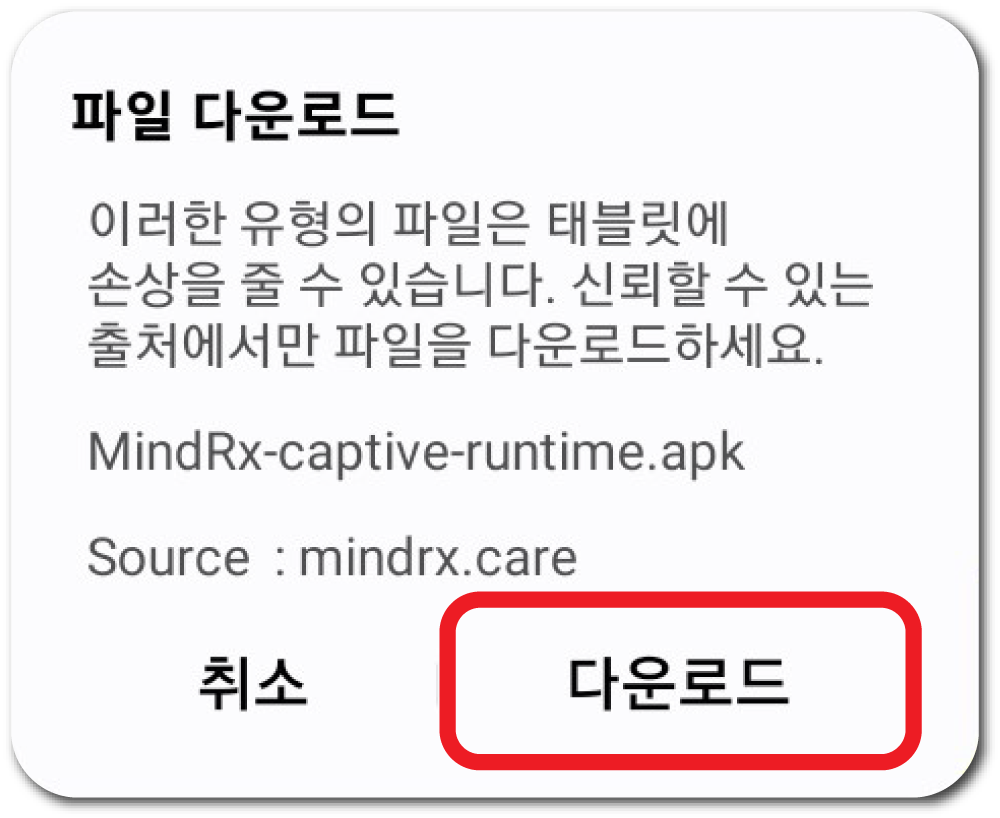 다운로드 버튼을 터치해 기기에 마인드 알엑스를 다운로드 하세요.